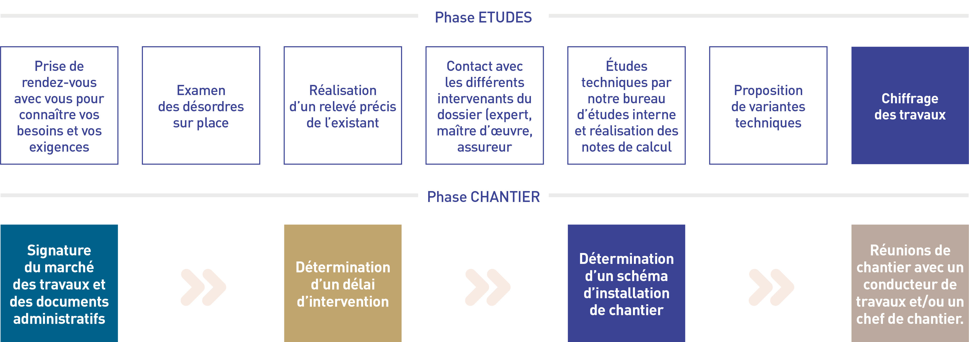 À la fin des travaux de reprise en sous-œuvre, un P.V. de réception de travaux est établi. Nous vous indiquons ainsi le planning prévisionnel de notre intervention pour la phase de reprise des dommages consécutifs réparation des dallages, des carrelages, etc.