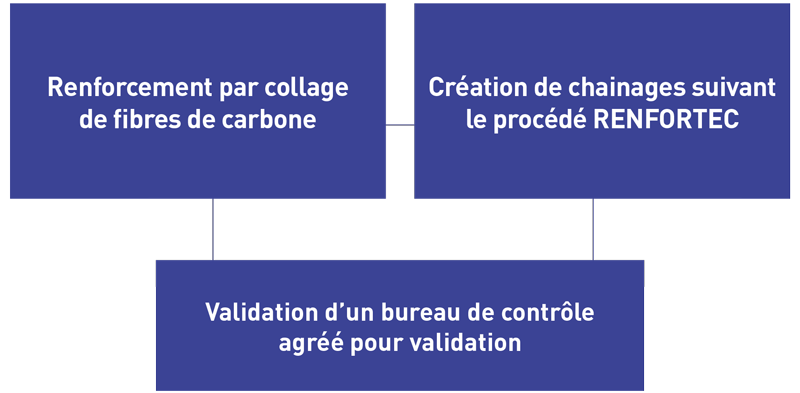 Renfortec® a mis point des techniques de renforcement parasismique pour éviter la démolition et la reconstruction. Après modélisation de la structure et soumission à l’accélération réglementaire sous logiciel ROBOT ou SCIA, nous proposons :
